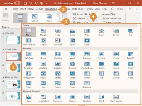 Slide transitions can add interest and variety to your PowerPoint presentation. You can use slide transitions to add visual interest and to emphasize key points. However, make sure to use slide transitions sparingly and to choose transitions that are relevant to your topic.